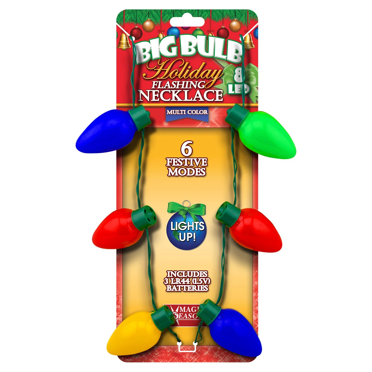 | This 8 LED Big Bulb Necklace will make you the life of any party! With its lightweight design it makes it comfortable to wear and the three flashing modes make you stand out from the rest. Give them to your friends and family for any holiday party.