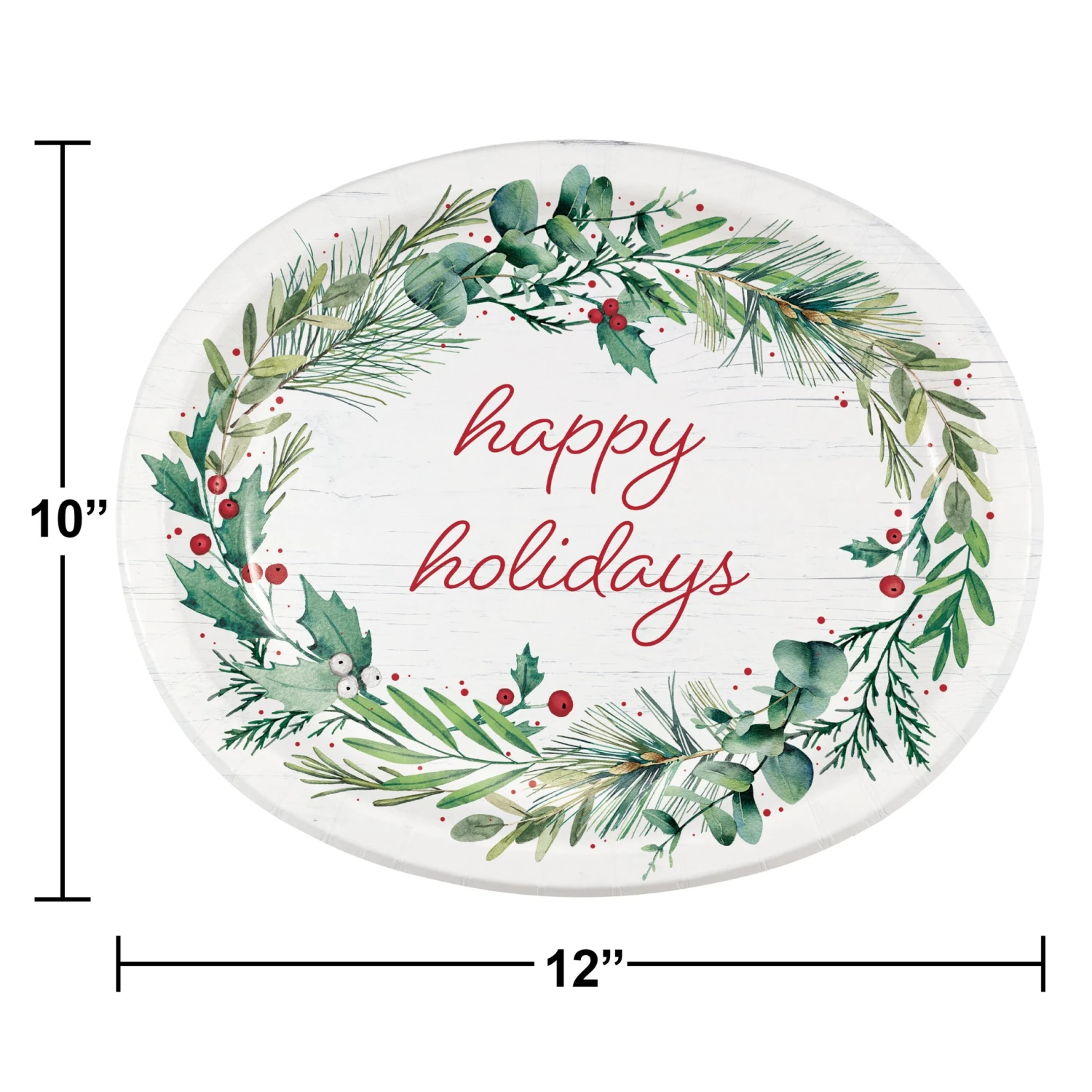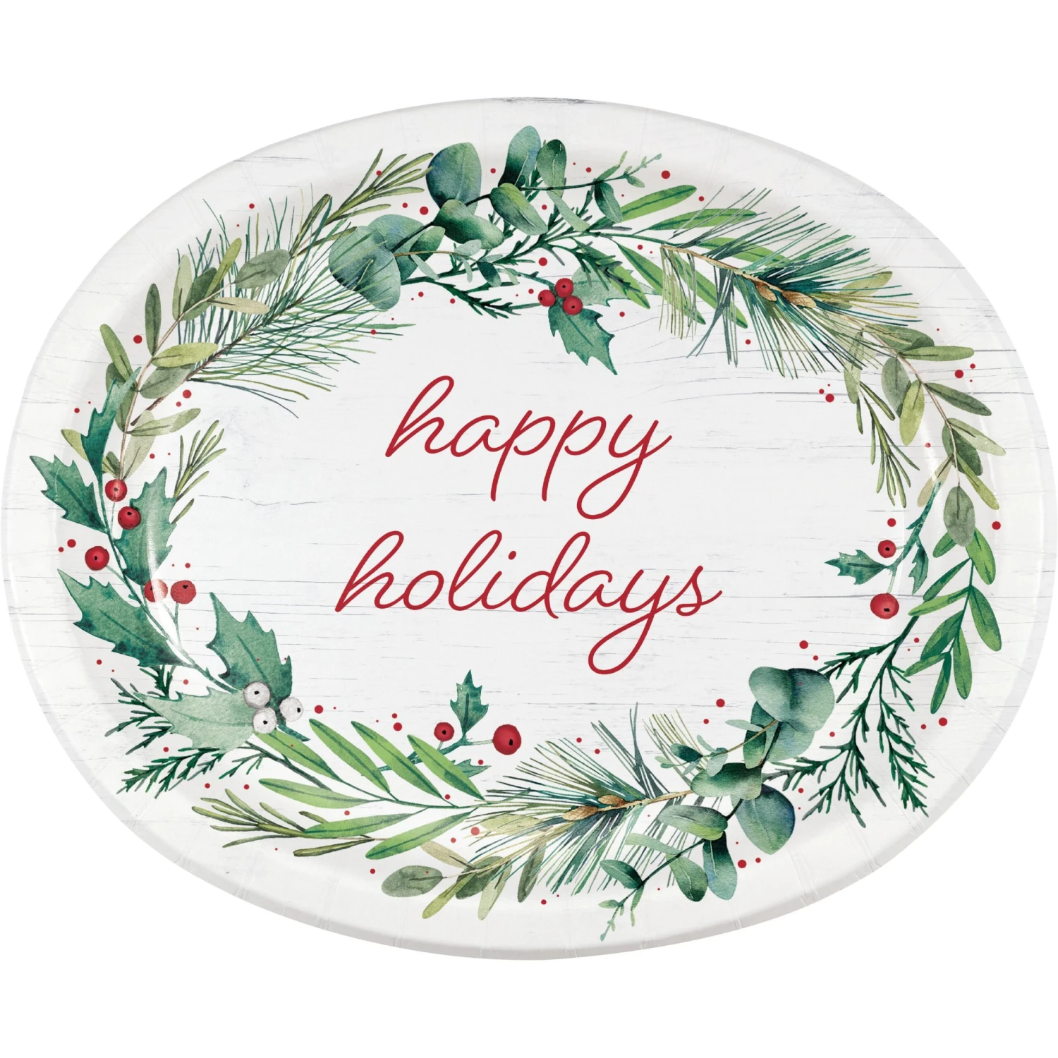 Celebrate the holidays with these Happy Holidays Oval Paper Plates at your table. These feature a holly and berry design and the words “Happy Holidays” elegantly written across them. These measure 12″ x 10″, and come 8 to a package so that you can pass them out to all your guests during the meal.