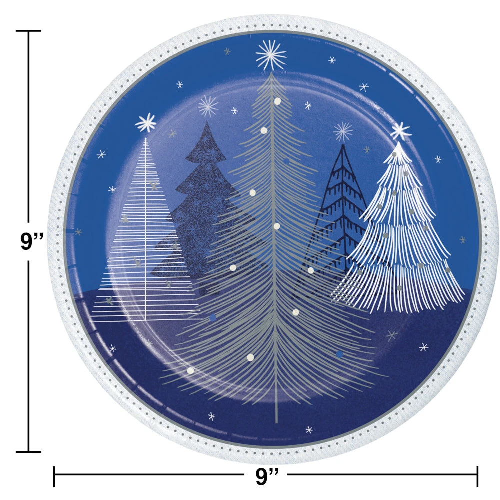 Incorporate some winter wonder at your event with 8 Snowfall 9in Paper Plates. Measuring at 9″ these paper plates are perfect for a winter-themed event, or a holiday celebration. Enjoy a spirited atmosphere with these blue and silver plates. They do have foil accents, making them not suitable for microwave use.