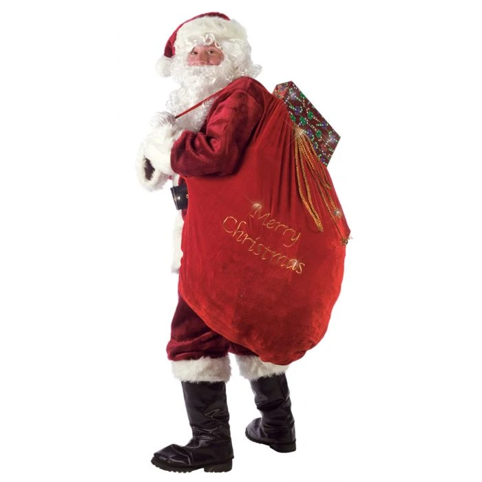 - 30″ x 36″ Deluxe Velvet Sack with Gold Embroidered Lettering and Drawstring