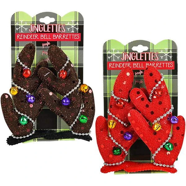 Jingle all the way to a fun and festive holiday season with these Jinglettes Reindeer Bell Barrettes